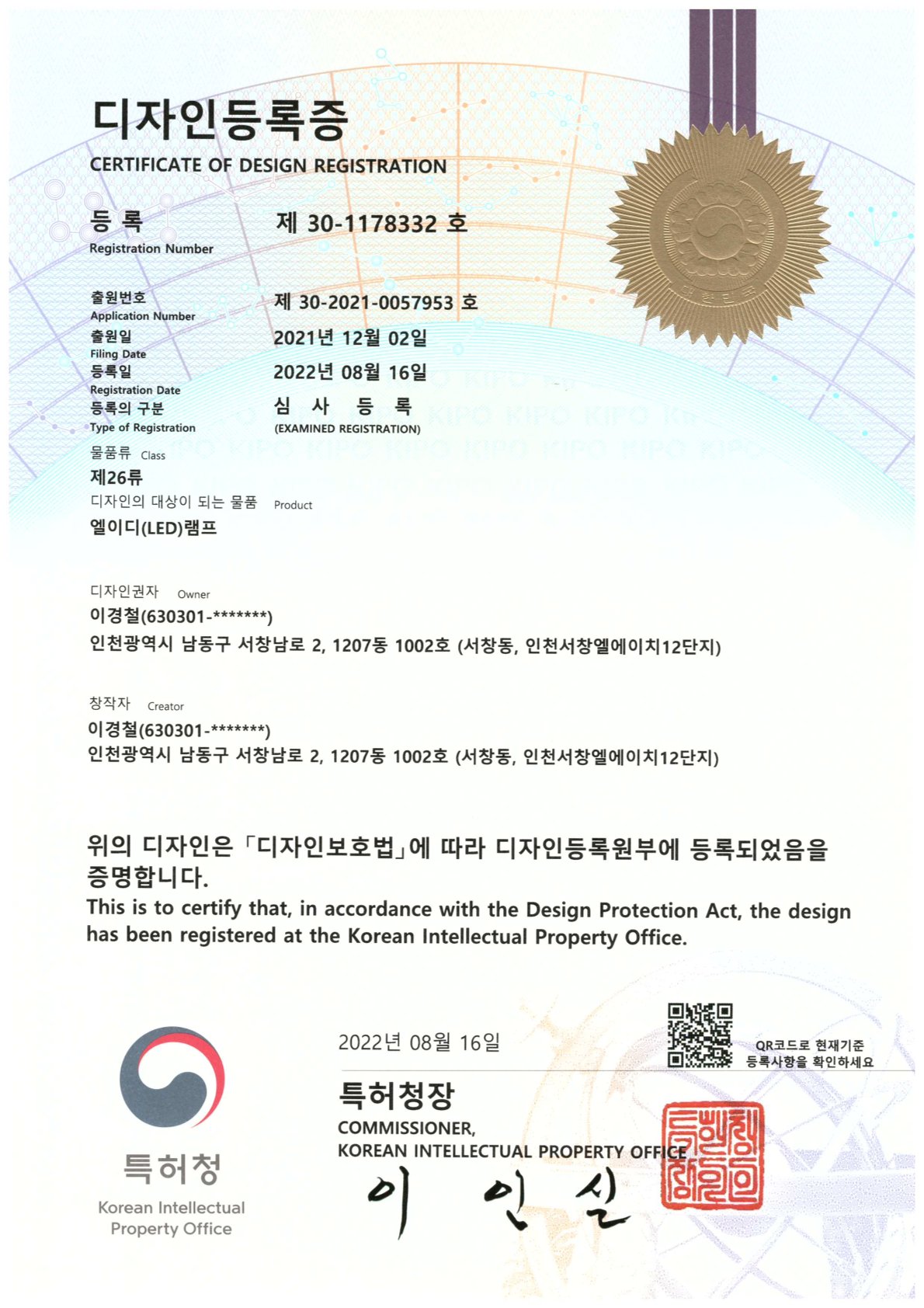 디자인등록증 30-1178332